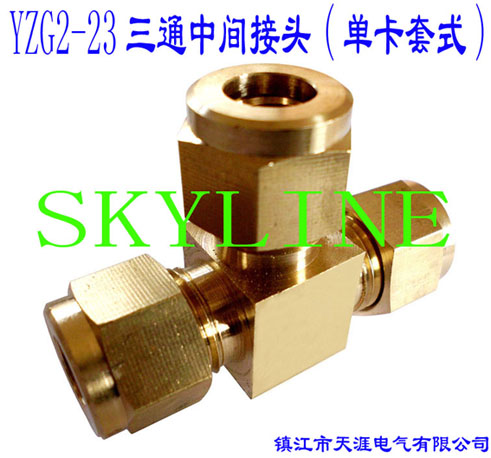 YZG2-22三通終端接頭(單卡套式)(銅管、尼龍管用)Extreme T-pipe Connector